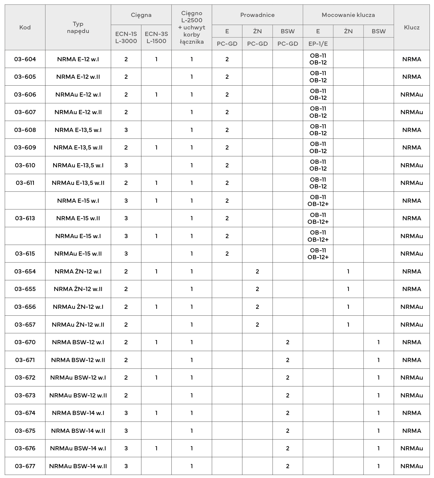 Klucze NRMA(u) umożliwiają zarówno montaż cięgna napędu o przekroju kwadratowym jak i okrągłym.
